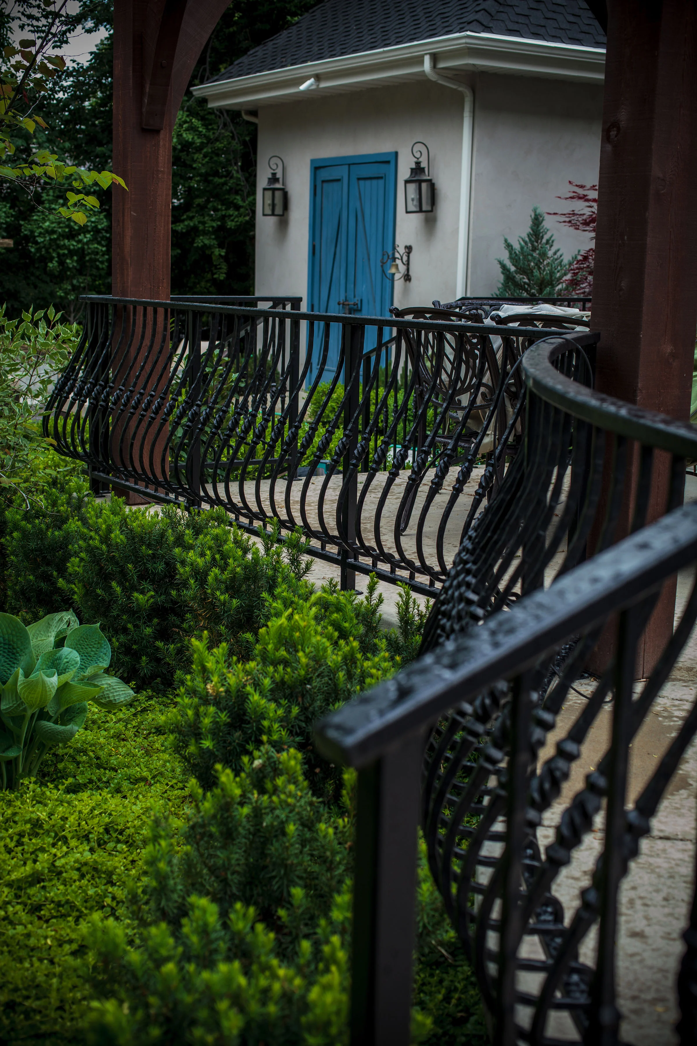 - Hillside access steps, railings, and landings